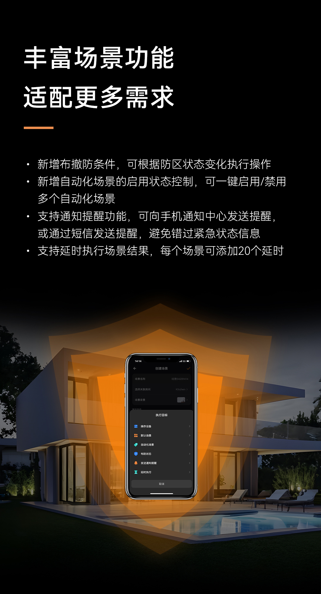 支持延時(shí)執(zhí)行場(chǎng)景結(jié)果,每個(gè)場(chǎng)景可添加20個(gè)延時(shí)