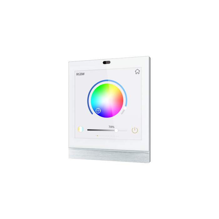 KNX 智能觸摸面板(V40s智能屏)用于顯示狀態(tài)和控制各種KNX設(shè)備,通過(guò)觸摸屏上的圖形按鈕,執(zhí)行預(yù)先設(shè)定的功能。如發(fā)送開(kāi)關(guān)燈報(bào)文、場(chǎng)景報(bào)文、開(kāi)關(guān)窗簾、空調(diào)控制報(bào)文等到總線系統(tǒng)中,控制總線上的其它設(shè)備。