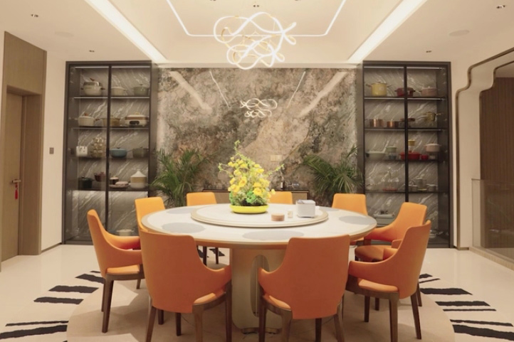 跟隨生活場景隨心調(diào)配燈光,中餐模式、西餐模式、會客模式、品茗模式......即使是同一個空間,也能營造出不同的氛圍感